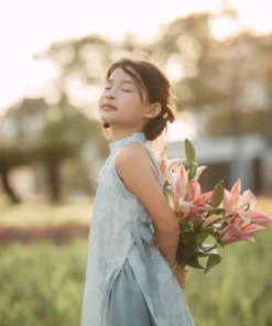 — Chuyển động tự nhiên: bước nhẹ giữa ánh chiều, cầm bó hoa hoặc chạm tay vào cánh hoa.