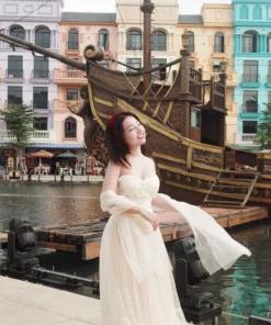 — Styling có thể là váy công chúa bay nhẹ, váy vintage, outfit fairy hoặc phong cách nữ tính mềm mại.